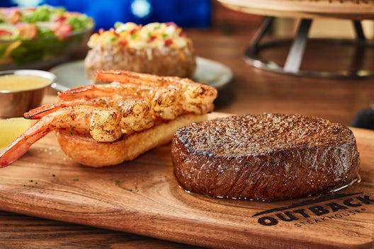 Our 13 oz. hand-cut ribeye with Grilled Shrimp on the Barbie or Coconut Shrimp. Served with two freshly made sides.
